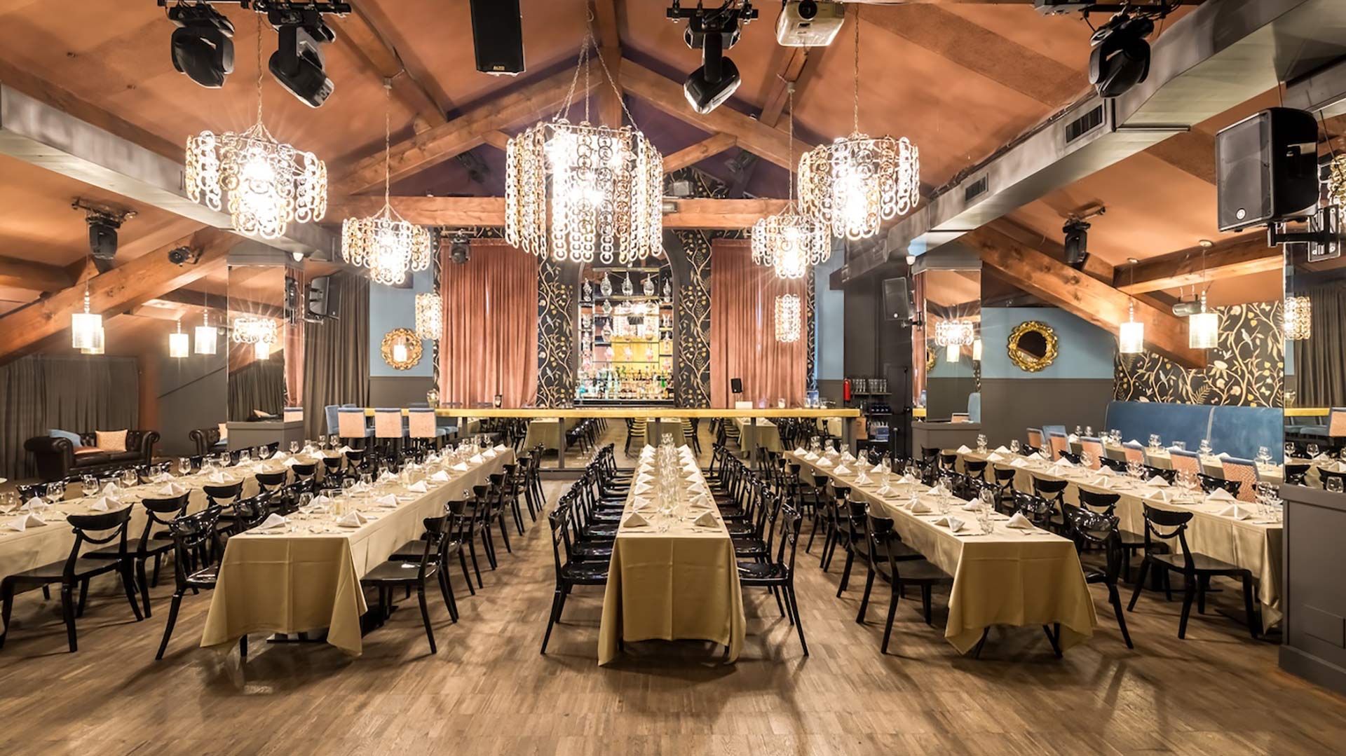 Pronti a splendere? A Maison, ogni dettaglio scintilla. Dai muri di glitter al palcoscenico dorato, dai lampadari luccicanti al sorriso accogliente del nostro team, tutto brilla.